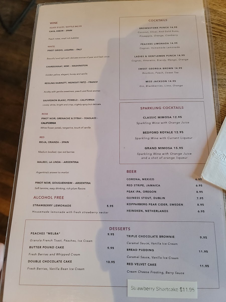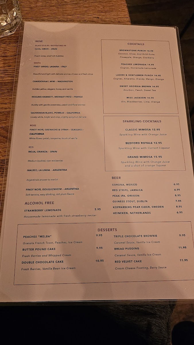 - Cocktails: Sip on the refreshing Brownstone Punch or the sophisticated Ladies & Gentleman Punch, each crafted to enhance your dining experience.